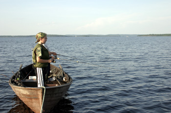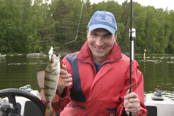 alussa. Ruoveteläinen kalastaja ja kalastusopas, iktyonomi Petri Ristiniemi